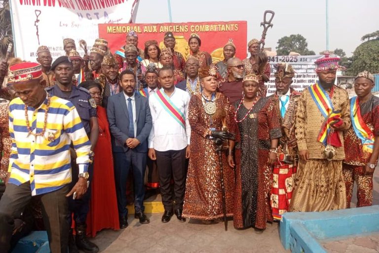 DRD/Kinshasa:, 03/07/2025: A picture during the event of triumphal march remembering the victory of the 'Force publique'. From left to right: Mr ...(Representative of the Ethiopian ambassador, Kasa-vubu borough's mayor in Kinshasa, queen Kuyalu (President of UCTA)